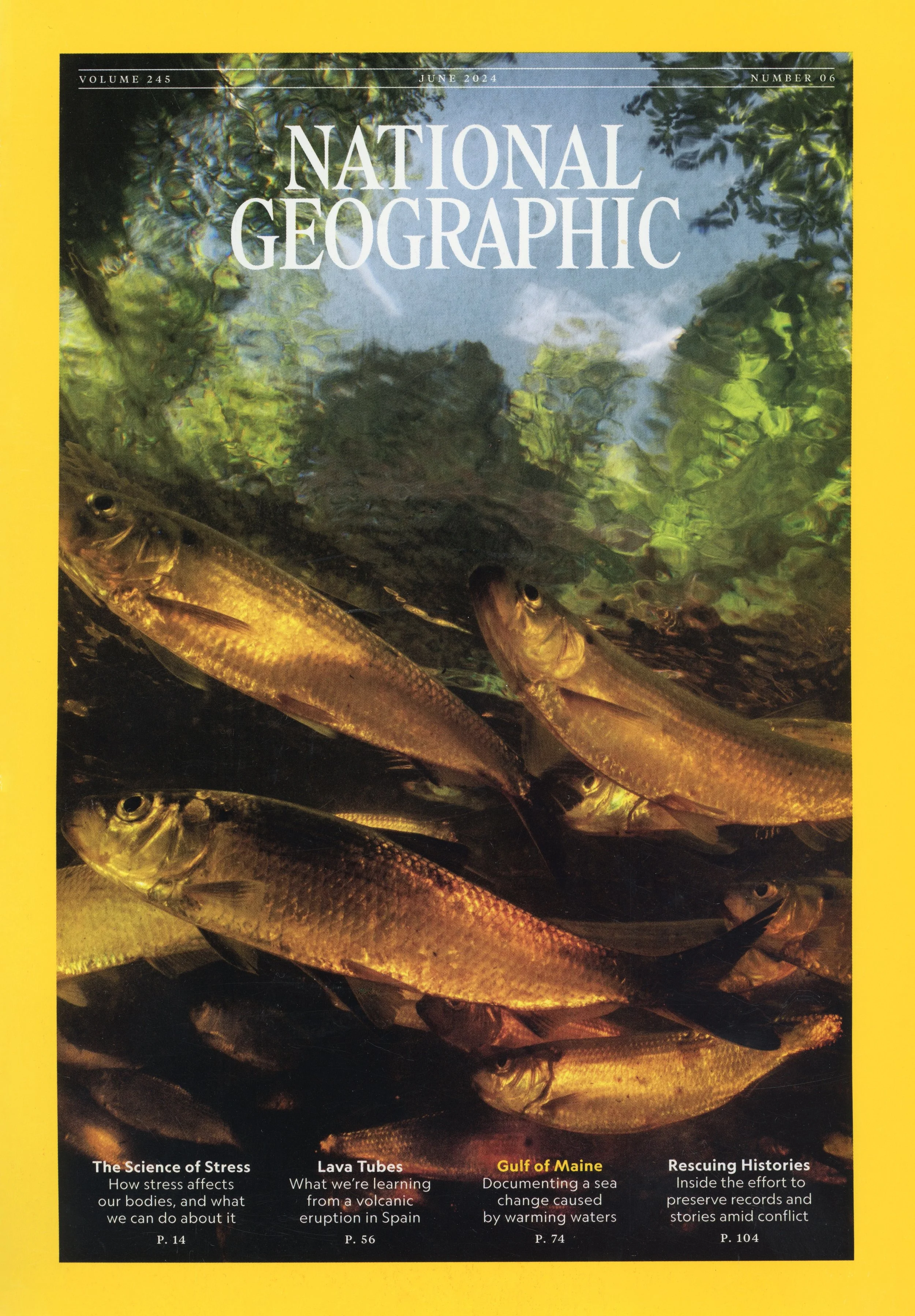 “Alewives had virtually disappeared from the gulf because dams kept them from migrating. The removal of dams in key rivers such as the Penobscot and Presumpscot, done largely in hopes of restoring Atlantic salmon populations, resulted in the revival of the alewife’s ancient migratory route; runs of fish in the millions now occur every spring. One beautiful experience I’ve had in recent years was photographing alewives at the base of a waterfall in Mill Brook Preserve, a tributary of the Presumpscot. The fish gather there to rest before going up the falls. Lying with my camera in only two feet of water, I was surrounded by thousands of alewives swirling around me, the way I imagine the river would have been long ago.”